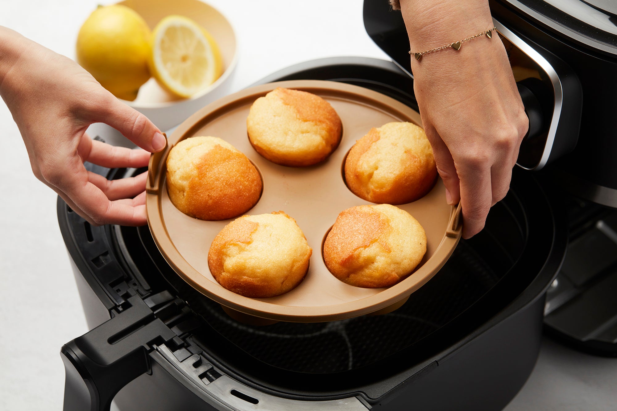 Bak zachte, luchtige vanillemuffins in slechts 15 minuten in je airfryer met de Point-Virgule siliconen muffinvorm (met handvatten). Gebruiksvriendelijk, antiaanbaklaag...